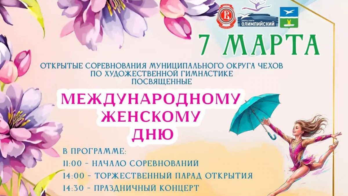7 марта во Дворце спорта «Олимпийский» имени В.С. Максимова» пройдут открытые соревнования муниципального округа Чехов по художественной гимнастике, посвящённые Международному женскому дню.
