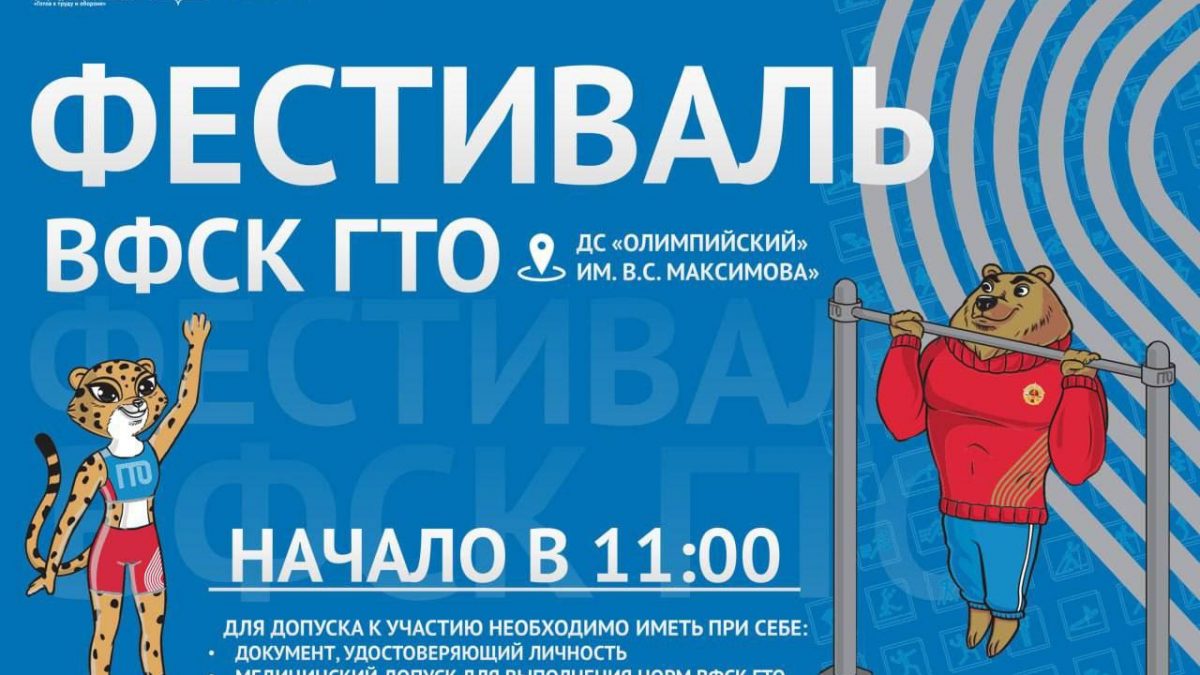 В субботу, 14 февраля, во дворце спорта «Олимпийский» им. В.С. Максимова» состоится Фестиваль ВФСК ГТО! Начало мероприятия в 11:00.